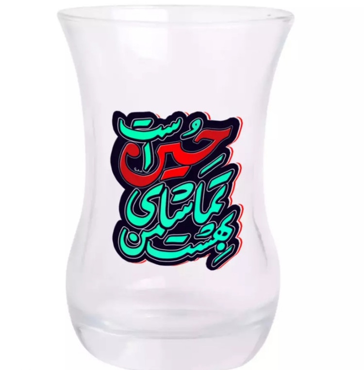 استکان تک عددی کمر باریک بدون دسته مزین به نام : بهشت من تماشای حسین است