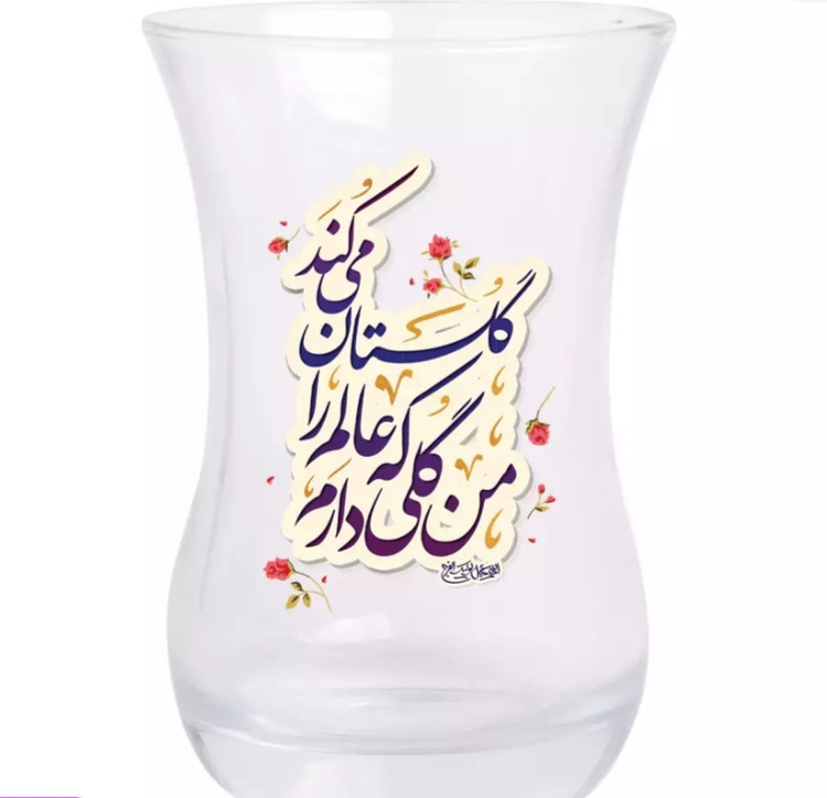 استکان تک عددی کمر باریک بدون دسته مزین به نام: من گلی دارم که عالم را گلستان می کند