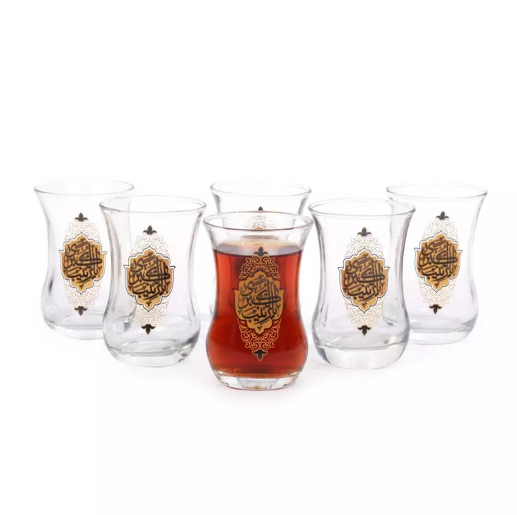 ست ۶ عددی استکان کمر باریک بدون دسته ، مزین به یا زینب کبری